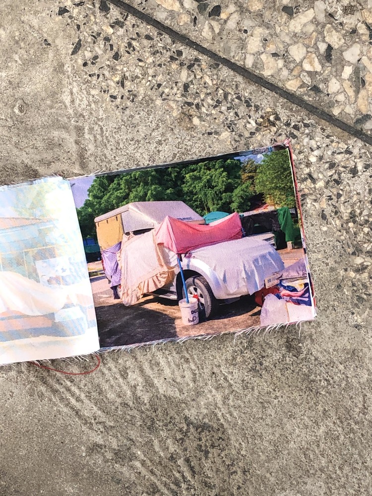 Colour photographs printed on fabric