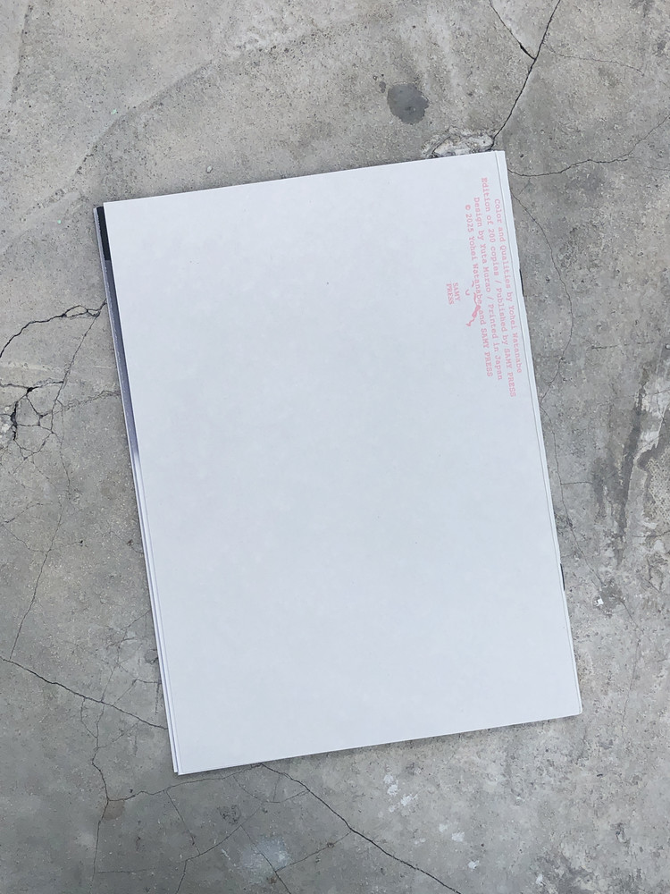This artist book by Yohei Watanabe is composed of images photographed from a papier-mâché object onto which multiple photo prints have been placed. The object interacts with the photograph by both revealing scratches and accumulated dust on the surface of the print, and by casting shadows and altering color values. By employing this structure—which allows for a rich depiction of the amplitude and fluctuation of images—Watanabe seeks to reveal the hidden color and qualities of all things that exist in the world, including this book as a printed object.
