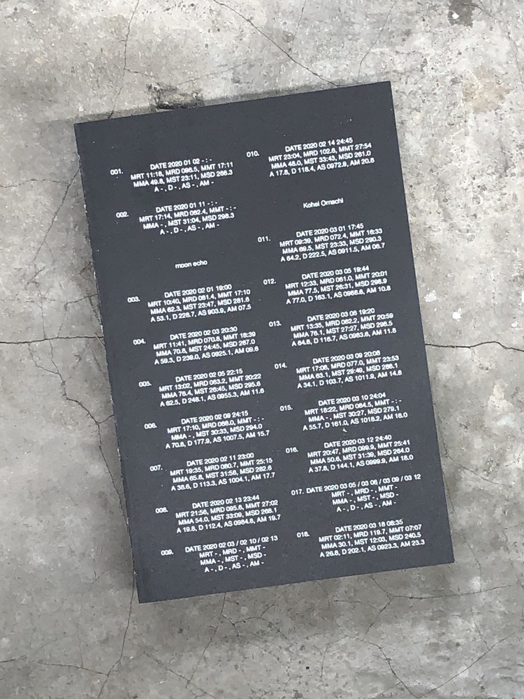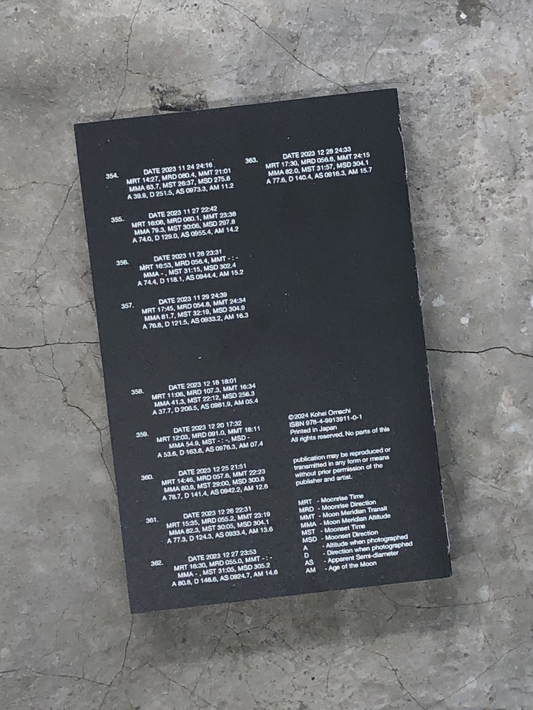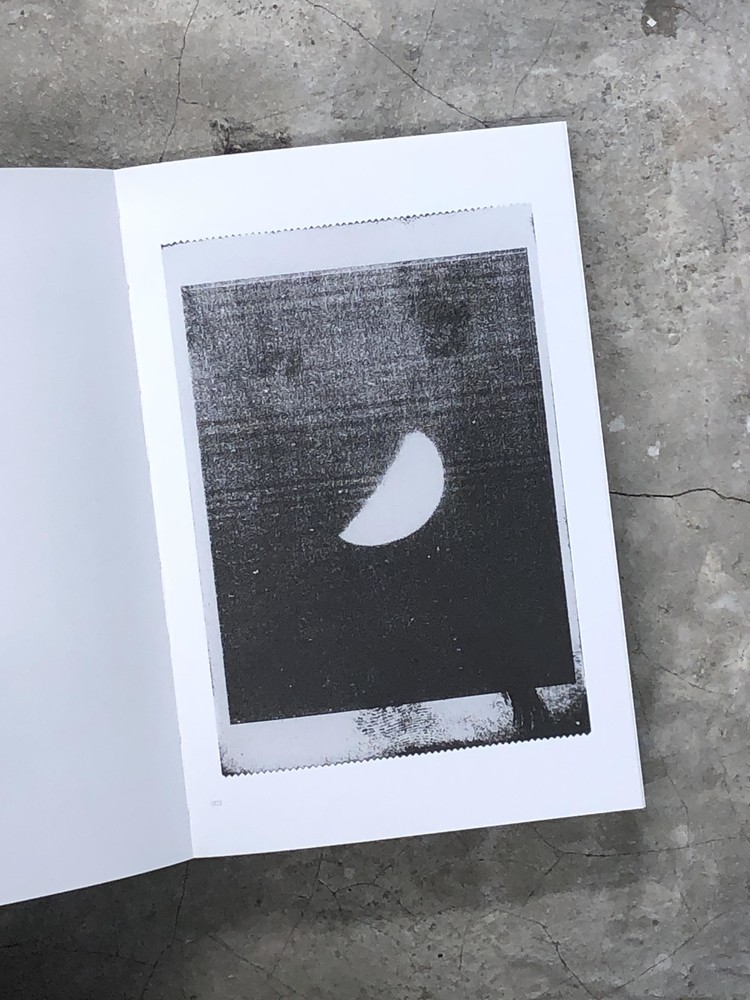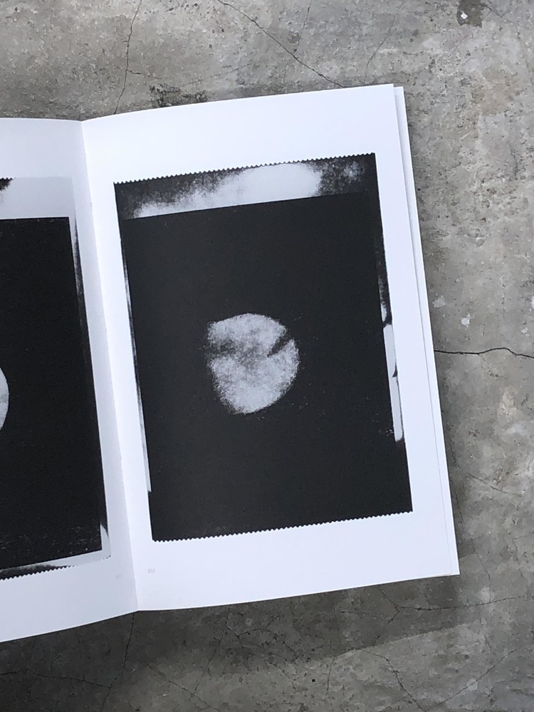 This book contains photographs of the moon taken between 2020 and 2023. Depicted as a fetus, the moon is printed on thermal paper—the same type used for ultrasound images.