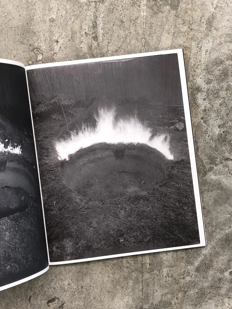 "Death is not here" combines disparate photographs created by artist Wouter Van de Voorde. Against the backdrop of the pandemic, he was about to become a father for the second time. He had been making still lifes with fossils, and in his spare time he had begun digging in the backyard with his son unearthing the grave of a family chicken. Photographs of subsequent excavations, rock sculptures, an eroded gorge and an ongoing preoccupation with ravens are combined to create a new narrative representing everyday encounters between life and death.