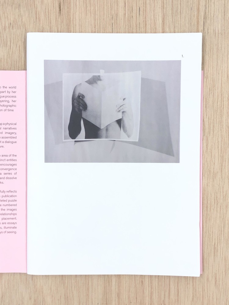 Rather than producing a catalogue that faithfully reflects the form and content of the exhibition, this publication presents an opportunity to upturn the completed puzzle and reconfigure the pieces anew. New rhythms and formal relationships are suggested through proximity and placement. Punctuating this fragmented flow of images are essays by William Boling, Sara Jaspan, Mike Pinnington, & Jacob Charles Wilson who in surveying the debris, illuminate new paths of meaning and suggest fresh ways of seeing.